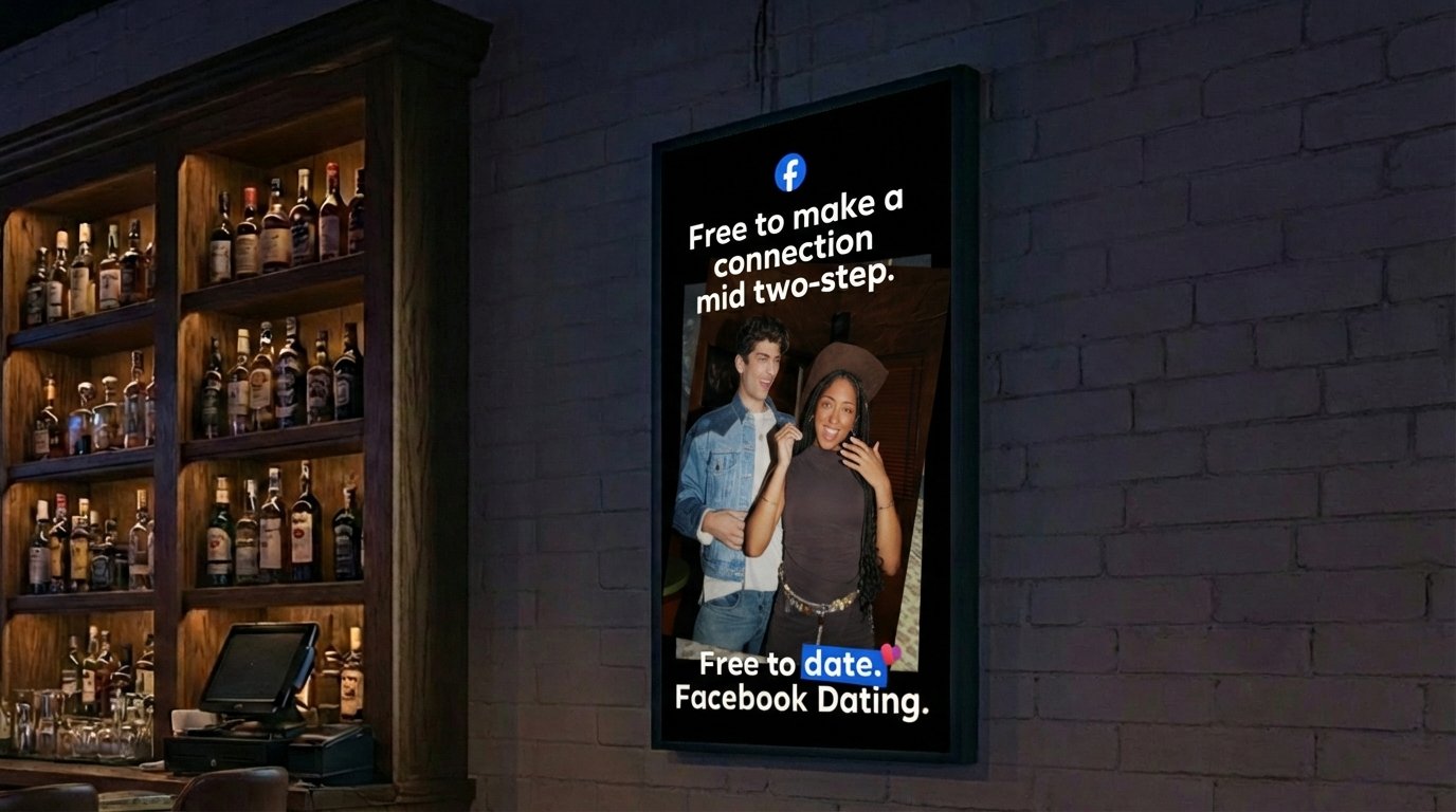 The campaign is designed to give Facebook Dating a distinctly local feel by targeting single 18-29 year olds in the Dallas and Austin areas. Our assets include ONP and OFP, as well as a variety of OOH placements like wildpostings and digital billboards around universities.